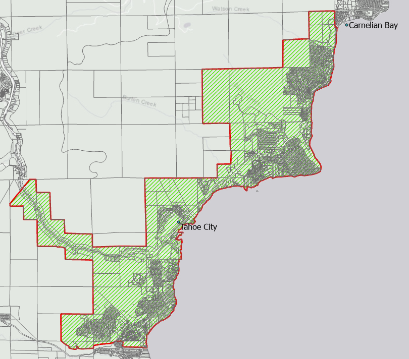 Ridgewood, Cedar Flat, Fulton Acres, Carnelian Heights, Highlands, Dollar Hill, Dollar Point, Lake Forest, Tahoe City, Granlibakken, Sunnyside, Tahoe Park, Talmont